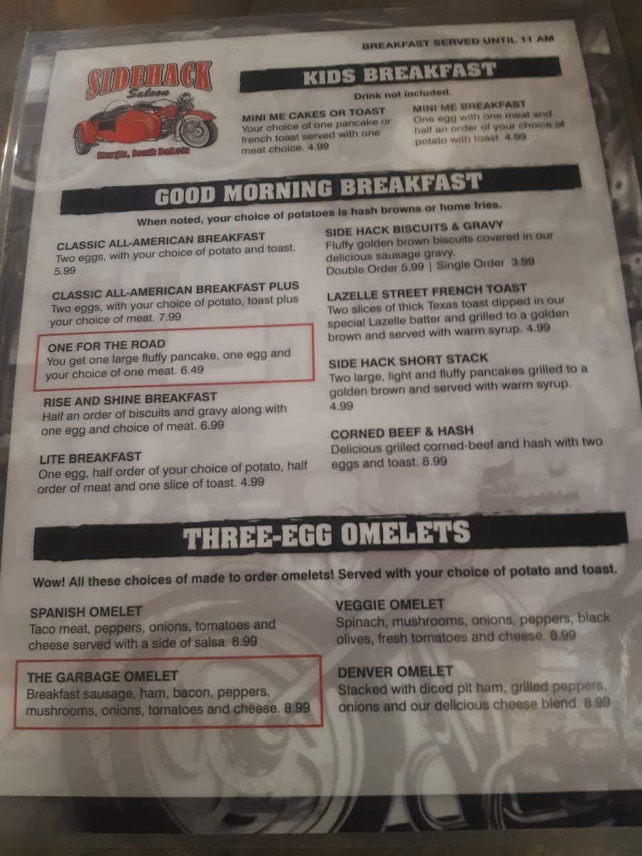 Welcome to Sidehack Saloon, a vibrant culinary hotspot located at 1027 Lazelle St, Sturgis, SD. This dynamic venue is not just about food; it's a full experience where great cuisine meets an engaging atmosphere. The menu is a delightful mix of hearty breakfast options and satisfying lunch fare that perfectly complements the lively ambiance.